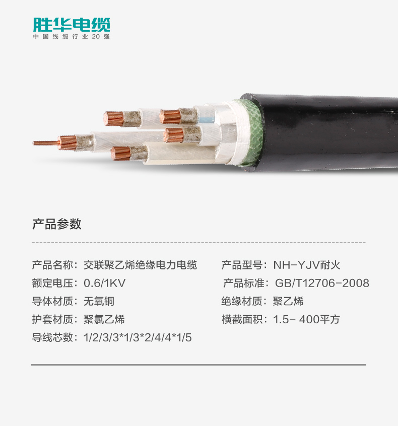 胜华电缆NH-YJV-0.6/1KV耐火交联聚氯乙烯绝缘铜芯电力电缆