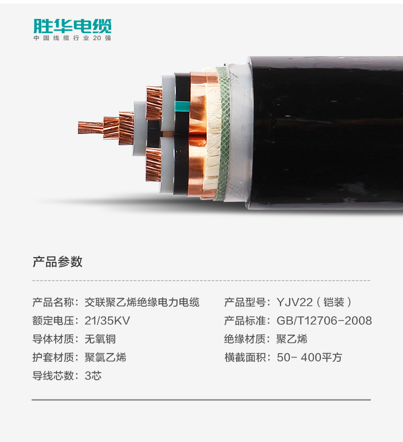 胜华电缆YJV22-21/35KV/高压铠装钢带交联电力电缆线