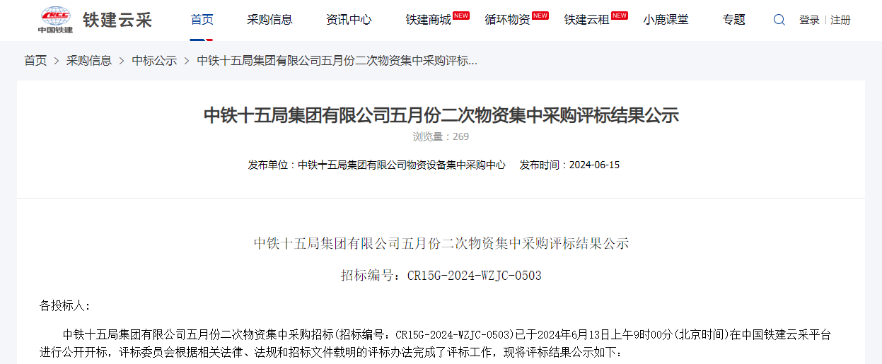 中铁十五局集团有限公司五月份二次物资集中采购招标(招标编号:CR15G-2024-WZJC-0503)已于2024年6月13日上午9时00分(北京时间)在中国铁建云采平台进行公开开标。 评标委员会根据相关法律、法规和招标文件载明的评标办法完成了评标工作,评标结果公示中显示河南胜华电缆集团有限公司中标中铁十五局集团城市建设工程有限公司信阳CAZ双创产业园项目。中标金额为23597913.45元。 此次河南胜华电缆集团能够中标信阳caz双创产业园电缆包项目,将为园区提供高品质的电缆产品,确保园区内电力供应稳定可靠。同时,这也是对信阳caz双创产业园品牌形象的有力提升,为园区的招商工作带来积极影响。 接下来河南胜华电缆将继续秉持“品质***,创新无限”的企业理念,为客户提供更优质的产品和服务。同时,河南胜华电缆期待与更多合作伙伴携手共创美好未来,为我国电缆行业的发展贡献力量。让我们共同期待河南胜华电缆在信阳caz双创产业园电缆包项目上的精彩表现,为园区的繁荣发展注入强大动力! 胜华电缆集团始建于1954年,中国机械制造500强,是一家非常有实力的电线电缆厂家,产品涵盖电线电缆型号几十万种,包括但不限于KVVP屏蔽控制电缆,ZR-YJV22铠装电力电缆,ZR-BVR,RVS,RVV聚氯乙烯绝缘护套家用布电线,YJLHV铝合金电缆,BTTZ矿用电缆,架空电缆,防火特种电缆等产品。所有产品都符合国家标准生产,质量有保障,优质电缆,选胜华电缆。